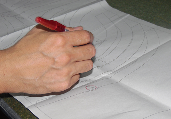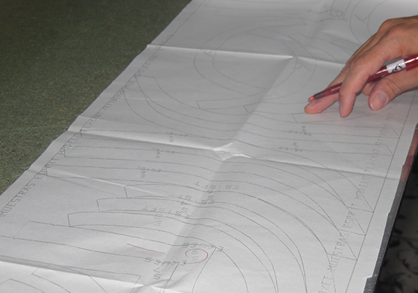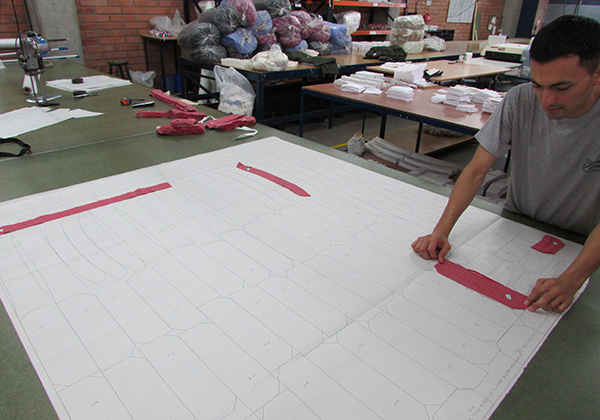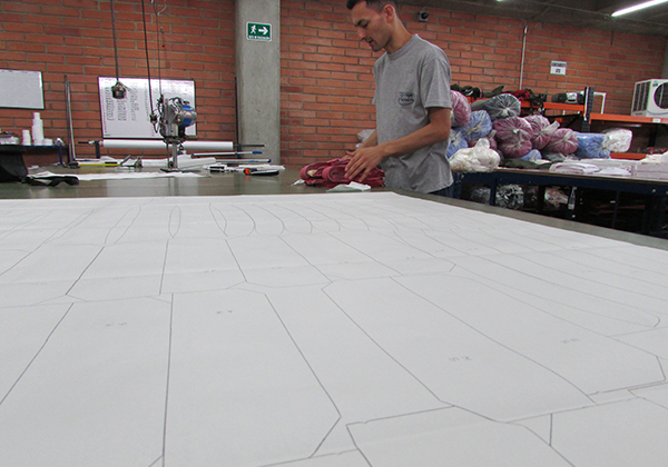 Proceso de dibujo de las partes de las prendas por medio de un software de diseño que despieza las partes de una prenda para luego ser cortadas.