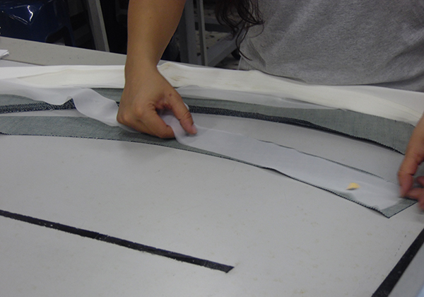 Proceso de extender la entretea en capas de determinado largo para obtener el número de piezas necesarias para cortar y posteriormente fusionar y confeccionar.